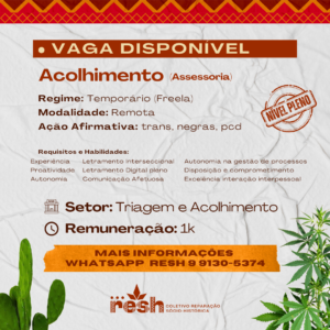 Vaga exclusiva para pessoas negras, trans, travestis, pcds, indígenas
